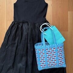 カラフルなプラスティックテープでしっかりと編まれたバスケットは、軽くて気軽に持ち歩くことができ、また壊れにくいのが魅力です。